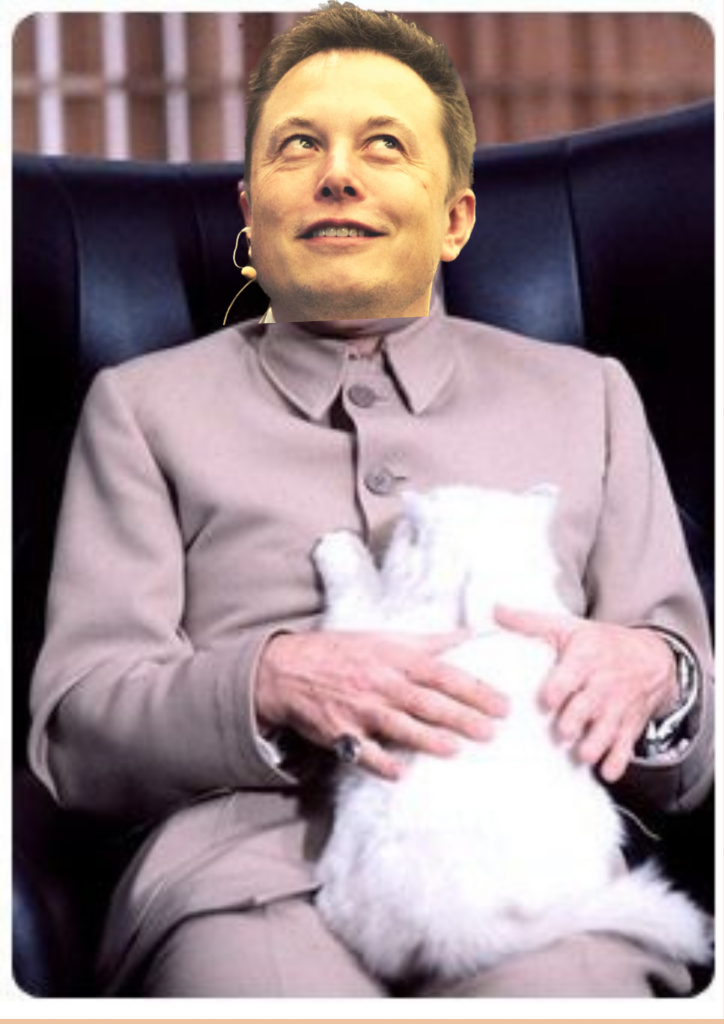 In an apparent bid to embrace his new role as a global supervillain, Musk tweeted earlier today, “Bought a pedigree white cat and about to move into my state-of-the-art former volcano lair #gonnatakeovertheworld”.